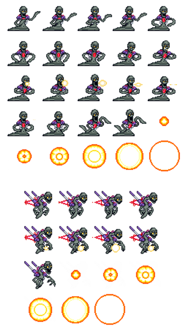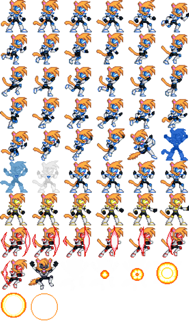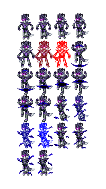 The antagonist of Prism Breaker. Jet's sprite sheet more so shows off the various effects and attacks he utilizes in his boss fight. Unlike Chroma he is nearly always airborne to give him a more powerful and intimidating visage.